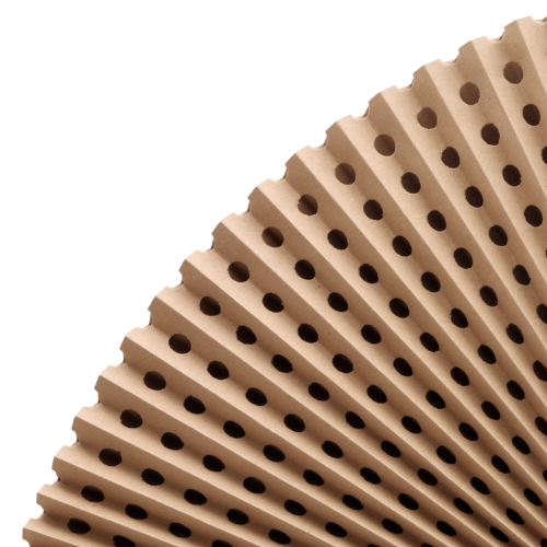 Il est composé de 2 couches de carton recyclé, perforé et plissé comme un accordéon, qui lui confèrent une courbe de perte de charge linéaire comme dans les cabines à rideau d’eau.